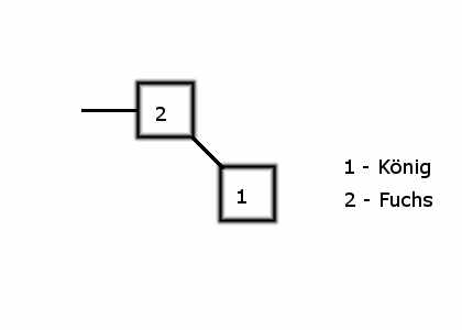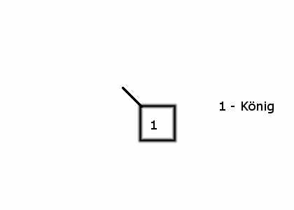 Nun kannst Du Deine Karte zeichnen: Nimm ein (am besten kariertes) Blatt Papier und umrande ein Kästchen. Dies wird auf Deiner Karte der Raum mit dem Wonnewichtkönig. Du kannst ja eine 1 in das Kästchen schreiben und an den Rand des Blattes notieren, dass bei der 1 der Wonnewichtkönig sitzt. Es gibt hier nur einen Ausgang, der nach Nordwesten führt. Also notieren wir das auf der Karte, indem wir von dem Kästchen aus einen Strich nach Nordwesten ziehen.