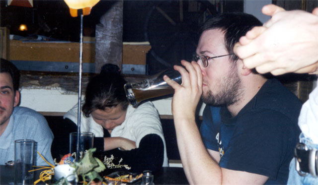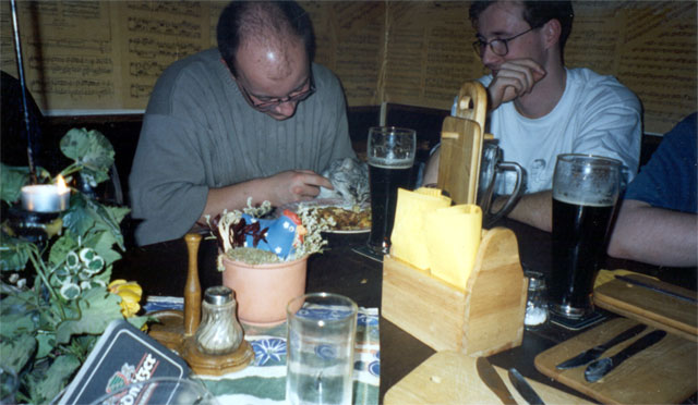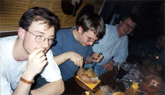 Bild 9: Hobbit Guard und Hobbit Ivo belagern Nichthobbit Gandur, der gar nicht schnell genug essen kann |