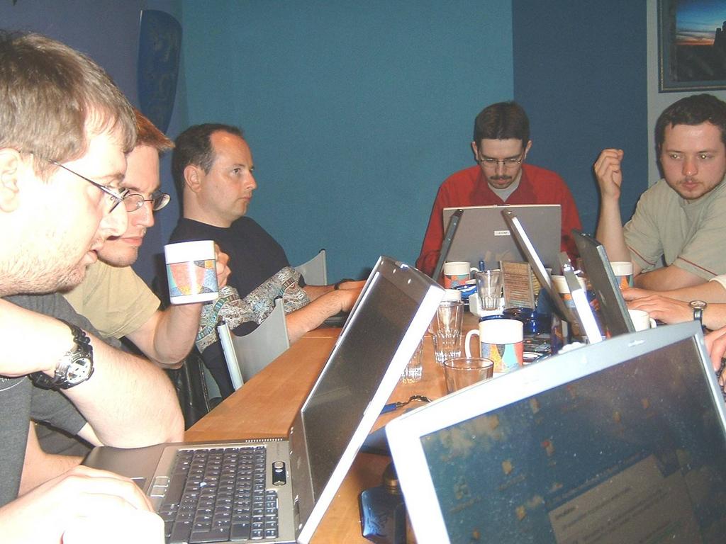 | Bild 10: Endlich werden die Laptops rausgeholt (aber die hier spielen nur WOW...) |