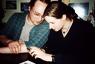 Bild 3: Croft und Perdita stecken verschwoererisch die Koepfe ueber Vincents Digitalkamera zusammen. |